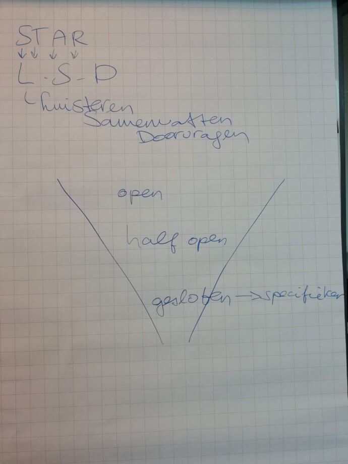 Een flipover blad die is gebruikt als uitleg tijdens de training voor de STAR-methode en de LSD-methode.